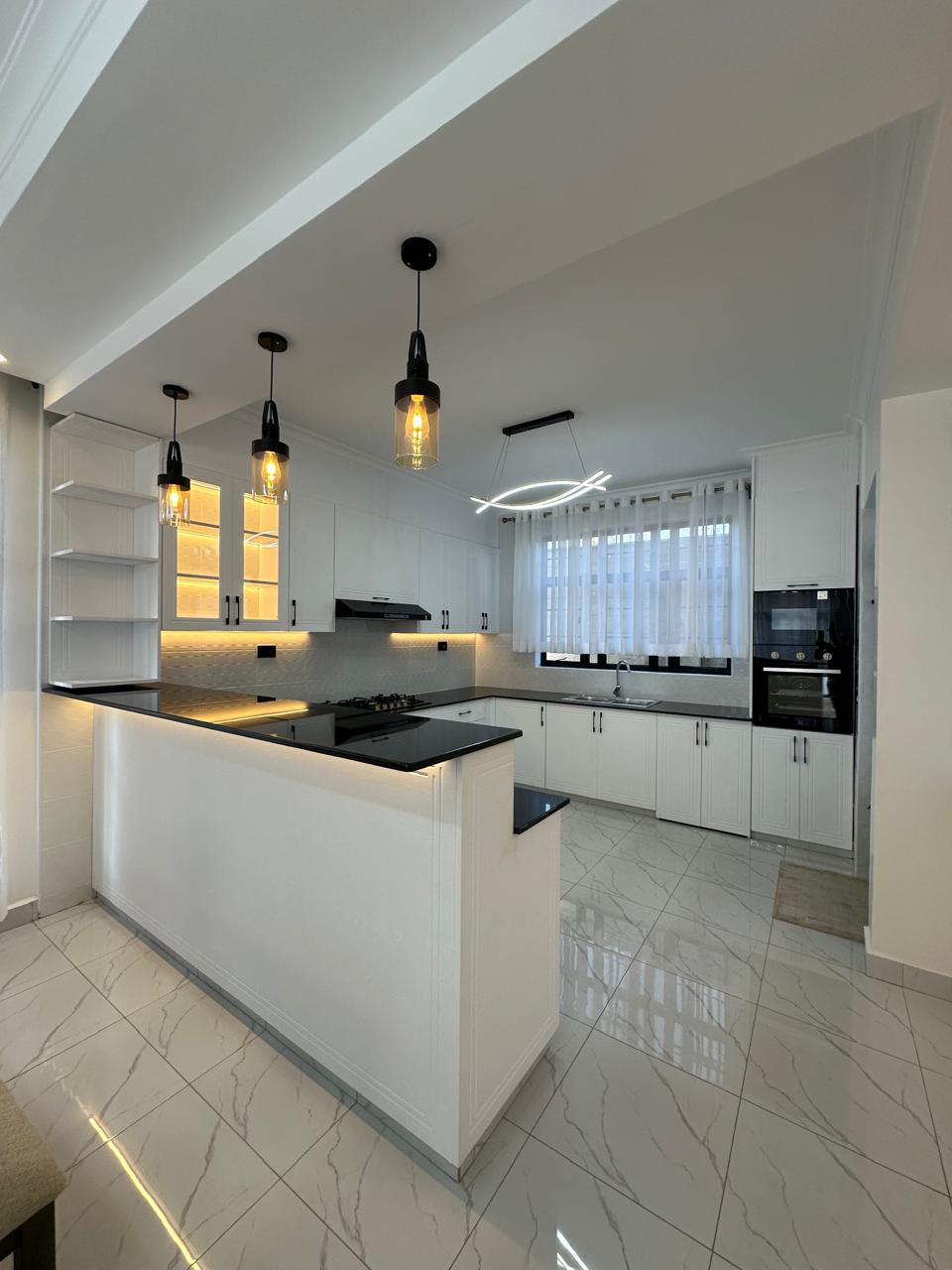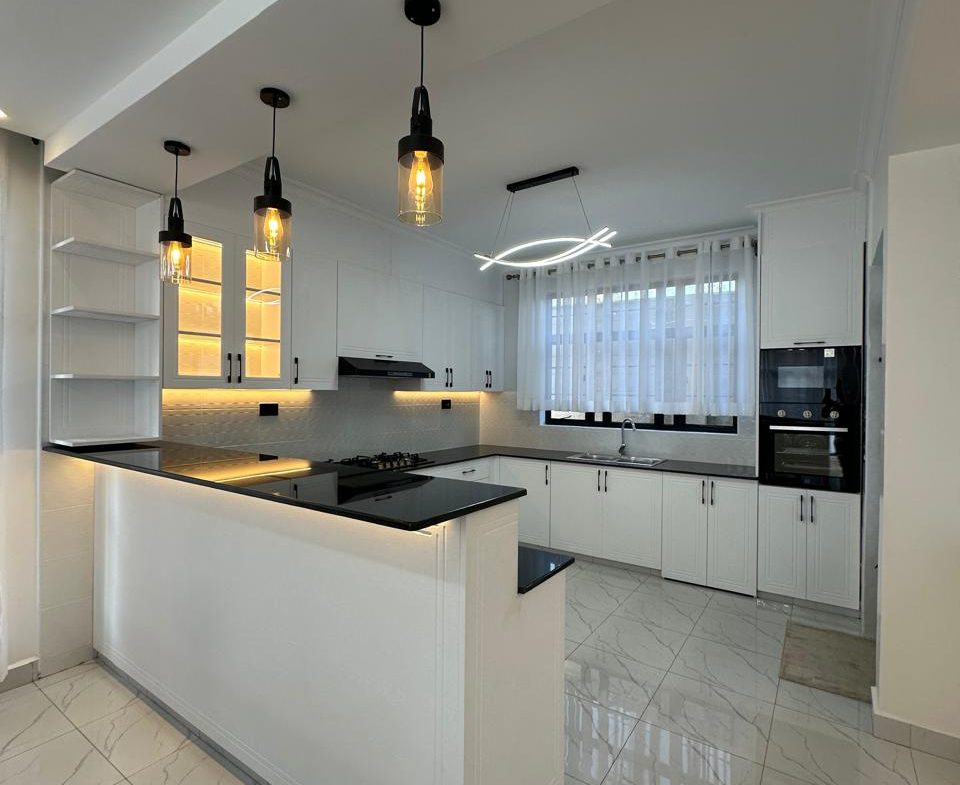 Customization of tiles, kitchen cabinets and wardrobes MDF, granite, and interior paint colour are chosen by the client from our standard variety of finishes.