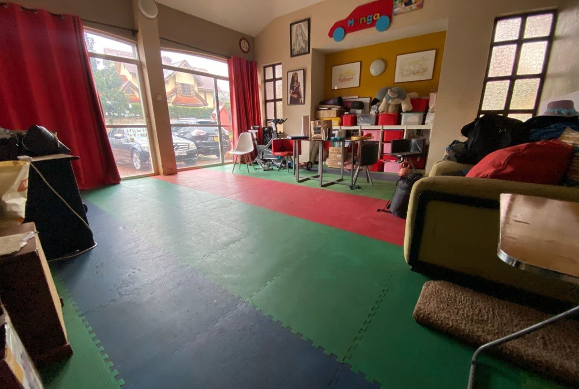 Additionally, the lockable garage has been creatively converted into an entertainment room, providing a private space for movie nights, gaming, or social gatherings. This feature adds significant value and versatility to the home, making it stand out among other houses for sale in Runda Mimosa.